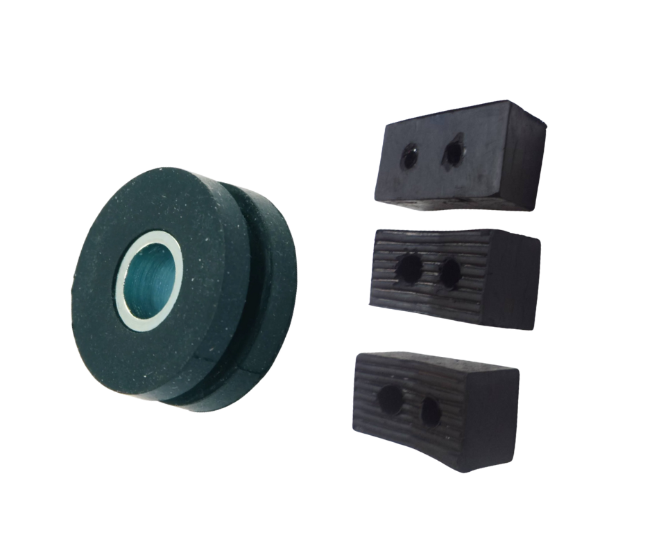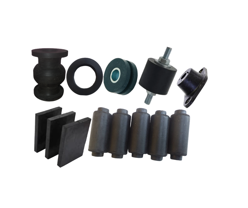 A component made of elastic rubber designed to absorb and reduce vibrations, thereby minimising noise, preventing damage, and improving the performance and lifespan of machinery or structures.